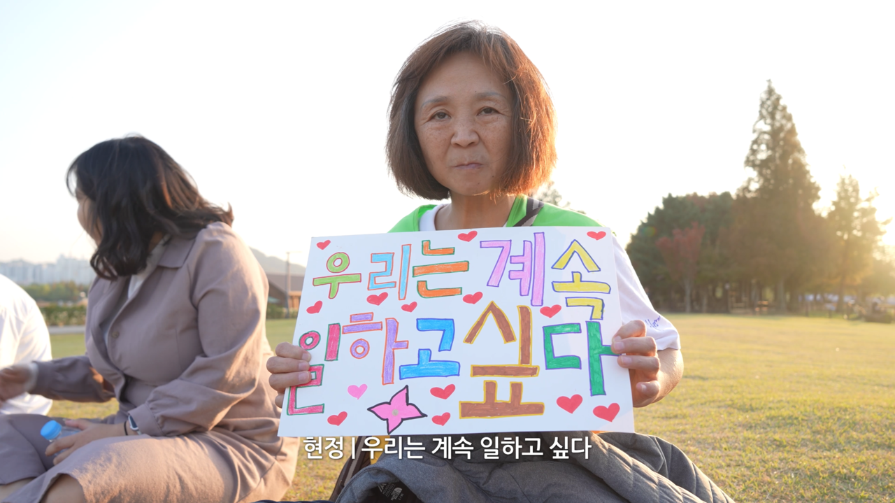 “풍악을 울려라 온 세상 떠들썩하게” 영화 속 노동자 대혁씨는 북을 치며 노래한다. 대혁씨의 노래 가락에 맞춰 중증장애인들의 노동이 전국방방 곳곳을 떠들썩하게 하고 있다. 서울에서 시작된 <서울형권리중심중증장애인맞춤형공공일자리>는 경기, 경남, 강원, 전남, 전북, 인천, 광주 서구, 춘천, 제천, 부산...전국 각지로 떠들썩하게 번져나가고 있다. 권리중심 노동은 유례없는 미래를, 전례 없는 노동을 수행해 나가며, 견고한 현재를 이동 시켜나가고 있다. 우리가 기존에 알고 있던 비장애중심 ‘노동’에 포함(인정, 포용)되는 것뿐만 아니라, 다층적 시민-존재자들의 ‘고유함’을 바탕으로 둔 노동, 권리를 옹호하는 노동, 공공의 가치를 실현하는 노동, 권리를 생산하는 노동을 통해 “온 세상 떠들썩하게“ 질문하고 있다. 이 떠들썩한 분위기에 찬물을 끼얹은 이가 있다. 바로, 오세훈 서울시장이다. 최중증장애인노동자 400명을 일시에 해고한 것이다. 영화 속 노동자 대혁씨는 권리중심일자리를 폐지한 오세훈 서울시장에게 조언한다. “없애지 말고요. 키우세요. “대혁씨는 덧 붙인다. “오세훈 시장은 뭐였지? 오세훈 시장은 건강하게 살아라! 오세훈 시장은 퇴진하라! 투쟁!“ 이제, 온 세상 떠들썩하게 최중증장애인노동자 해고복직투쟁의 풍악이 들리는 듯도 하다. 풍악을 울려라 온 세상 떠들썩하게 “투쟁!“